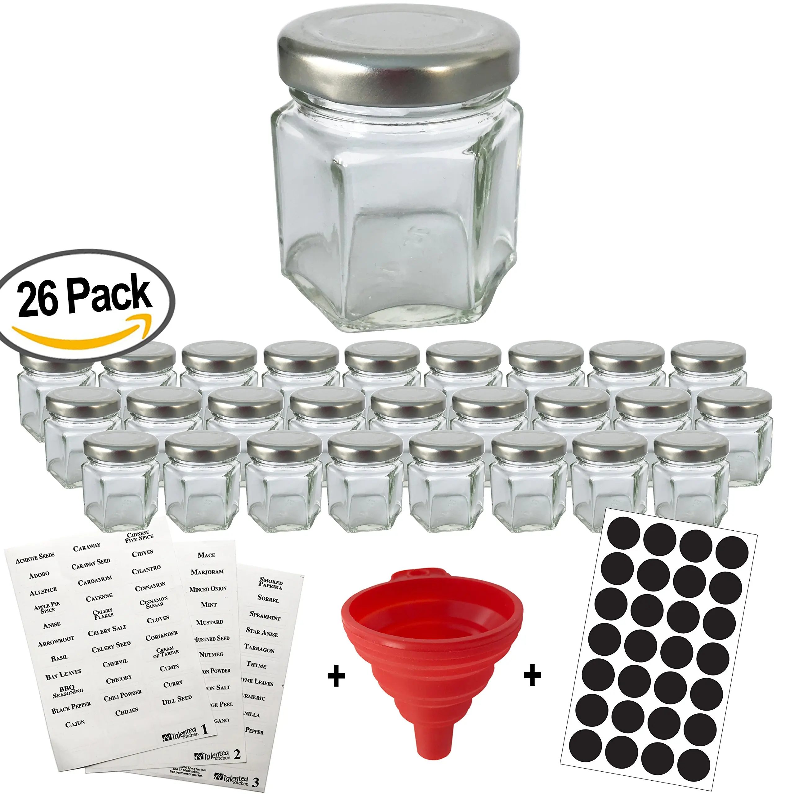 Talented Kitchen 14 Large Glass Spice Jars w/2 Types of Preprinted ... 14 jars includes 14 large glass jars (6oz), 14 sift and pour shakers, 7 additional big hole coarse shakers, 2 different types of preprinted clear spice labels, and round chalkboard labels. 2 great options that allow you to customize your spice rack as best suits you. 1 silicone funnel (simplifying the refilling task) and our exclusive magnetic …