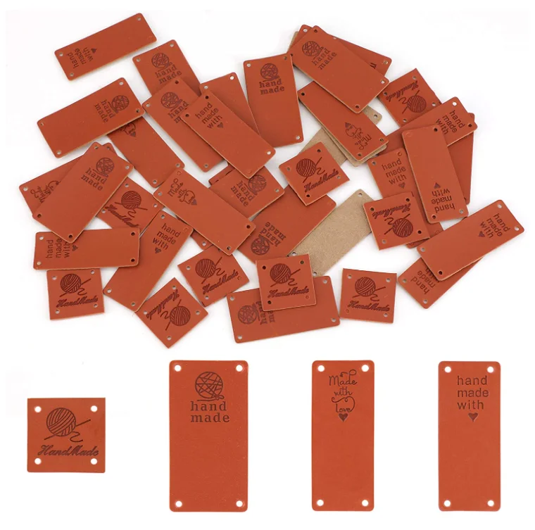 40pcs Custom leather label with rivets Handmade tags for crochet knitting Brand logo clothing hats care labels handcraft items